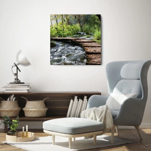 Relógio de parede - Relógio em vidro - Sobre a cascata espumosa - 30x30 cm