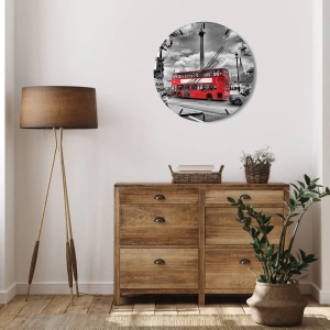 O relógio é feito de vidro de 4mm de espessura. A tecnologia de relógio está em conformidade com a classe de segurança 2B2 de acordo com a norma PN-EN 12600:2004, o que garante resistência ao impacto. O relógio em vidro está pronto para ser pendurado – possui um gancho de metal montado na parte de trás do relógio e um espaçador de espuma, que regula a distância uniforme entre o relógio e a parede. O relógio tem um mecanismo de fluxo silencioso alimentado por uma bateria de 1,5 V - bateria AA (a bateria não está incluída).