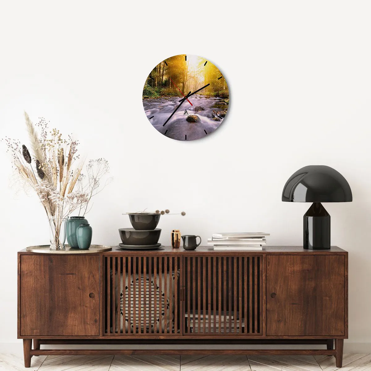 O relógio é feito de vidro durável de 4 mm de espessura. O vidro retém as cores naturais da impressão