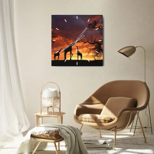 Relógio de parede - Relógio em vidro - Um pequeno jantar com seus entes queridos - 40x40 cm