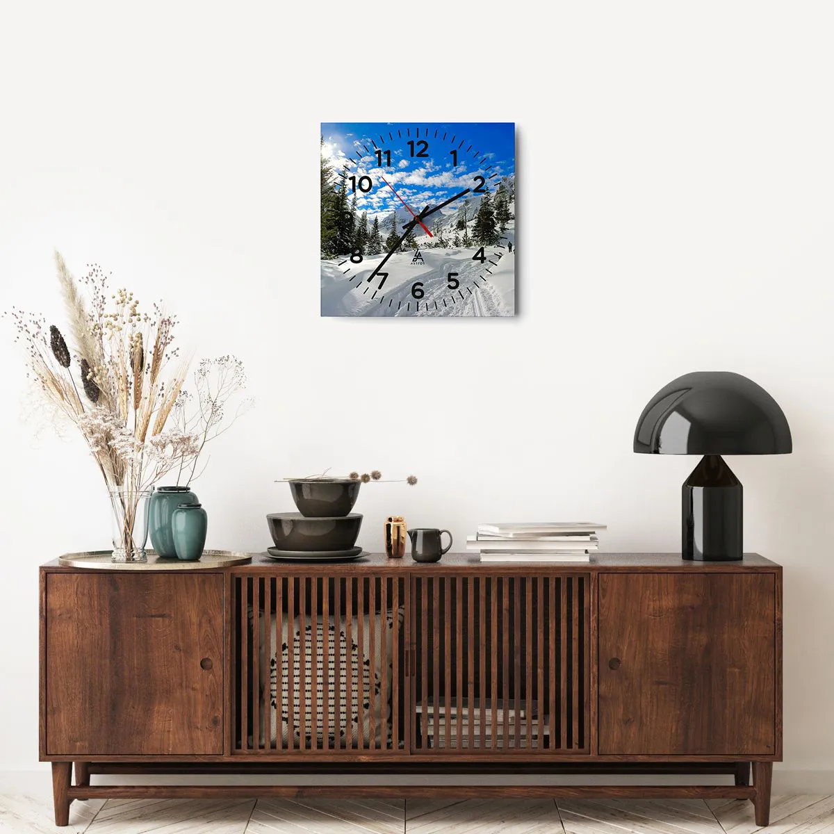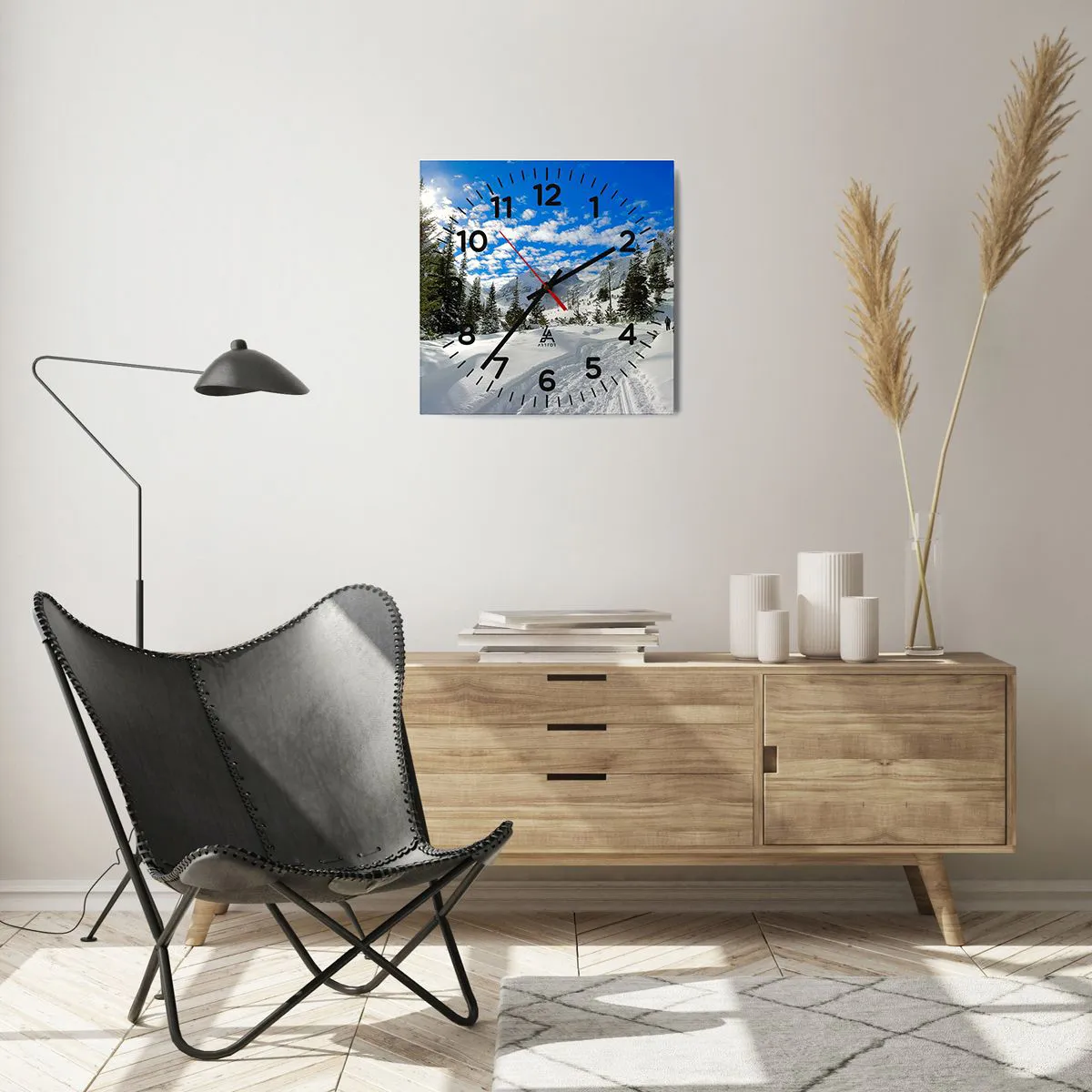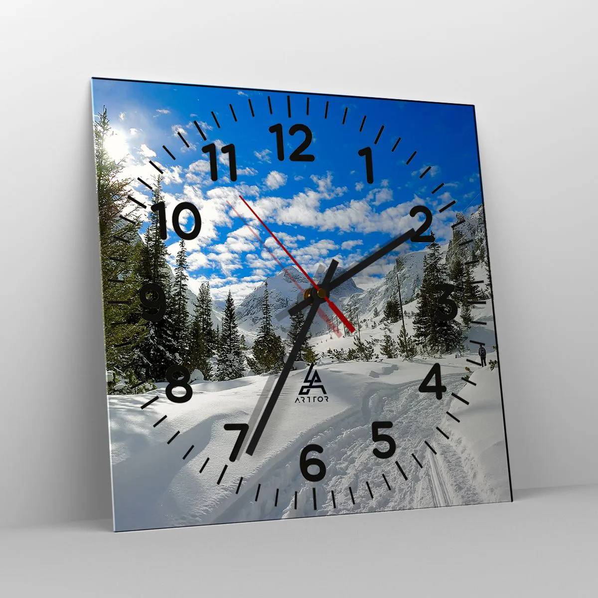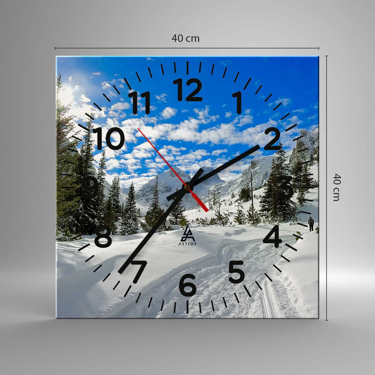 Relógio de parede - Relógio em vidro - Na neve e ao sol - 40x40 cm