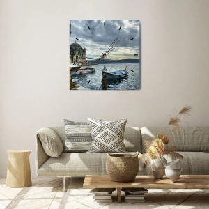 "Na Fronteira dos Mundos" é um relógio de parede exclusivo de 30x30 cm, feito em vidro, cujo tema é a arquitetura histórica à beira d'água, com barcos em primeiro plano e uma ponte ao fundo. O céu nublado confere à composição uma atmosfera única, enfatizando a beleza dos monumentos e a atmosfera de uma paisagem urbana tranquila. Essa vista combina cultura, arte e natureza, criando um conjunto extremamente harmonioso.