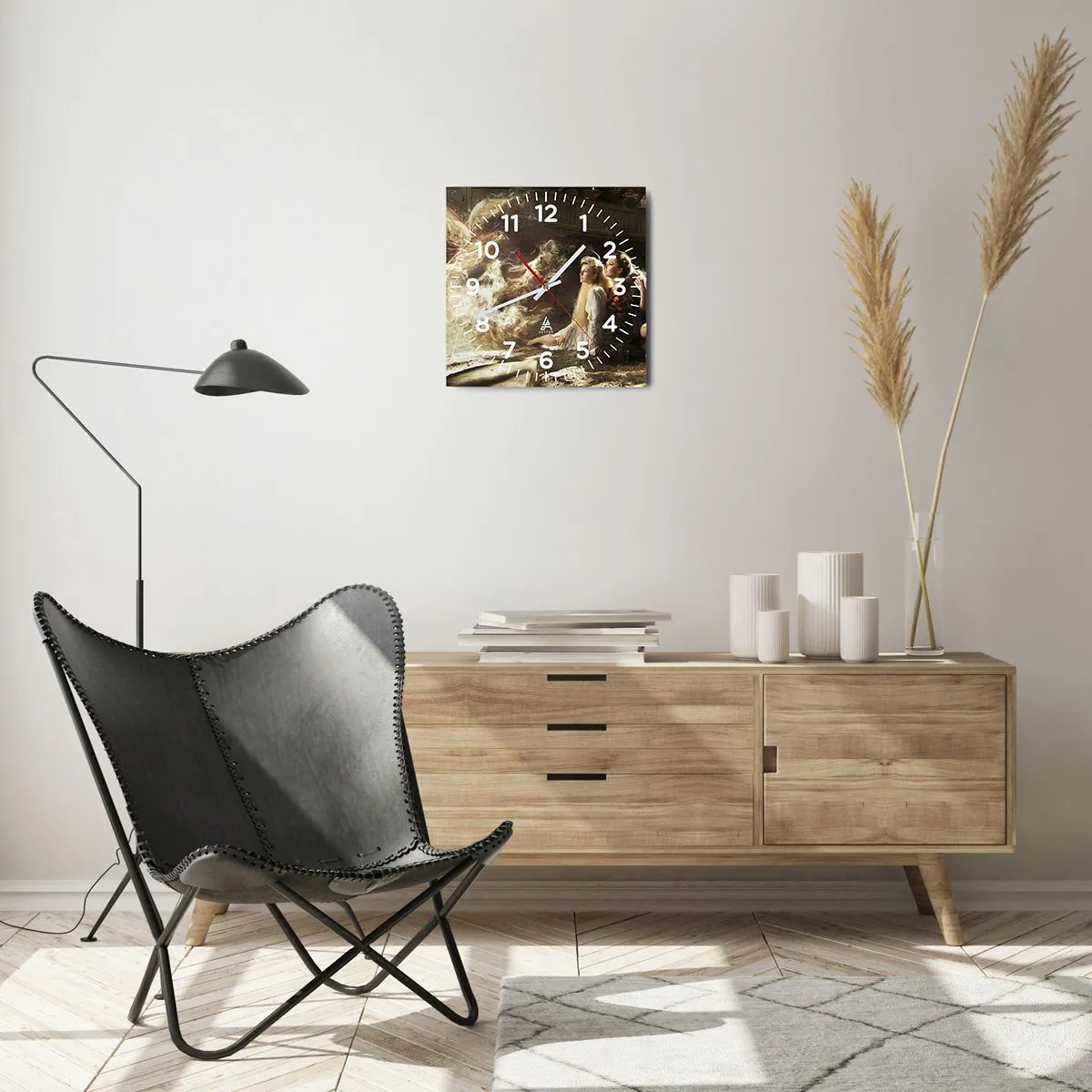 O relógio é feito de vidro durável de 4 mm de espessura. O vidro retém as cores naturais da impressão