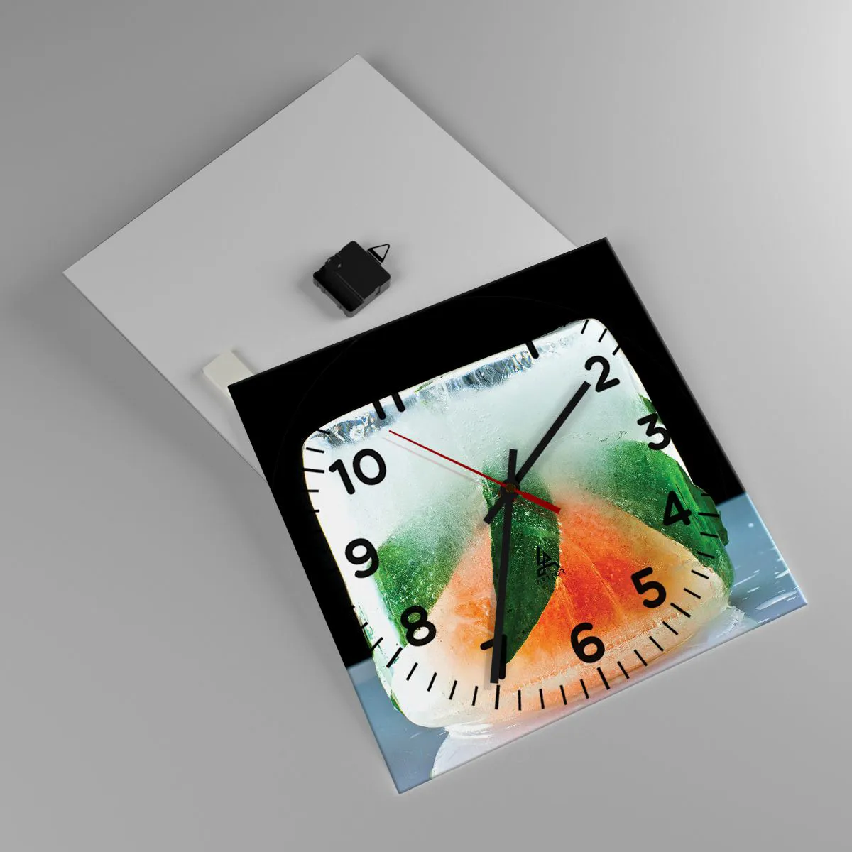 Relógio de parede - Relógio em vidro - Frescor e refresco - 40x40 cm