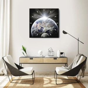O relógio é feito de vidro de 4mm de espessura. A tecnologia de relógio está em conformidade com a classe de segurança 2B2 de acordo com a norma PN-EN 12600:2004, o que garante resistência ao impacto. O relógio em vidro está pronto para ser pendurado – possui um gancho de metal montado na parte de trás do relógio e um espaçador de espuma, que regula a distância uniforme entre o relógio e a parede. O relógio tem um mecanismo de fluxo silencioso alimentado por uma bateria de 1,5 V - bateria AA (a bateria não está incluída).