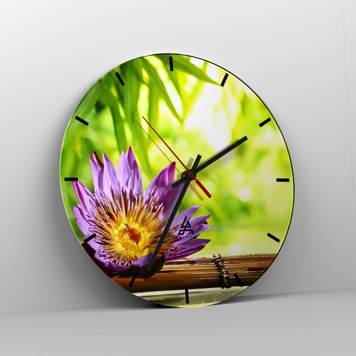 O relógio é feito de vidro durável de 4 mm de espessura. O vidro retém as cores naturais da impressão