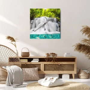 Relógio de parede - Relógio em vidro - Cascata espumosa do verde ao azul - 30x30 cm