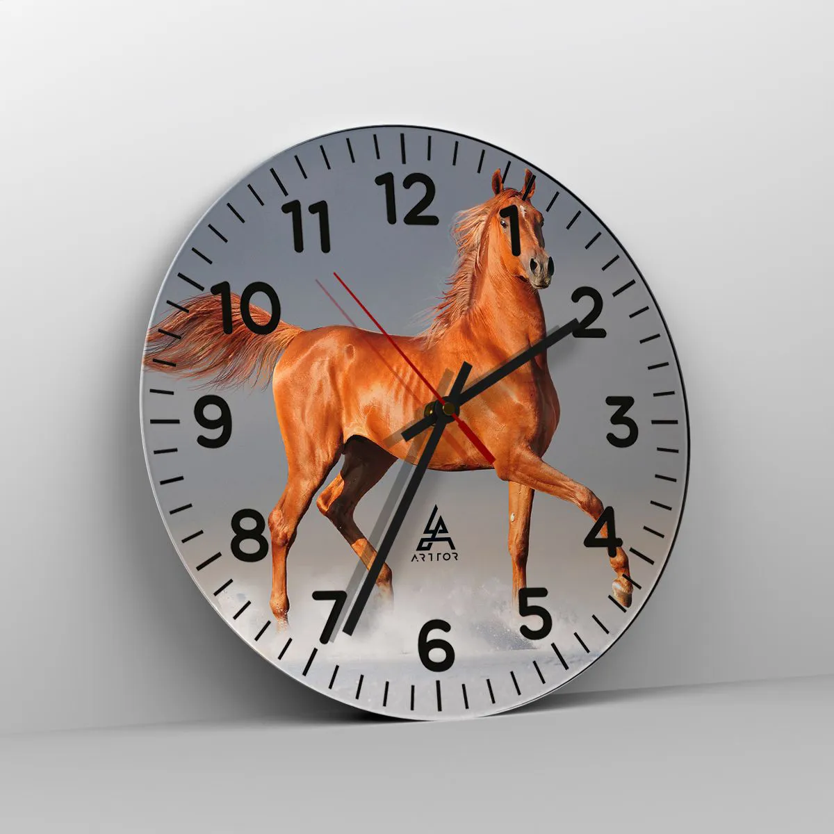 O relógio é feito de vidro durável de 4 mm de espessura. O vidro retém as cores naturais da impressão