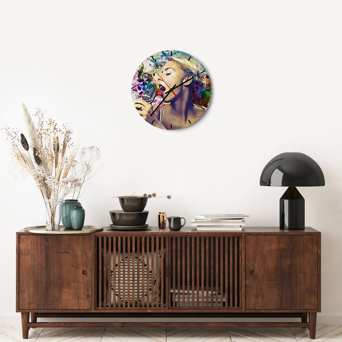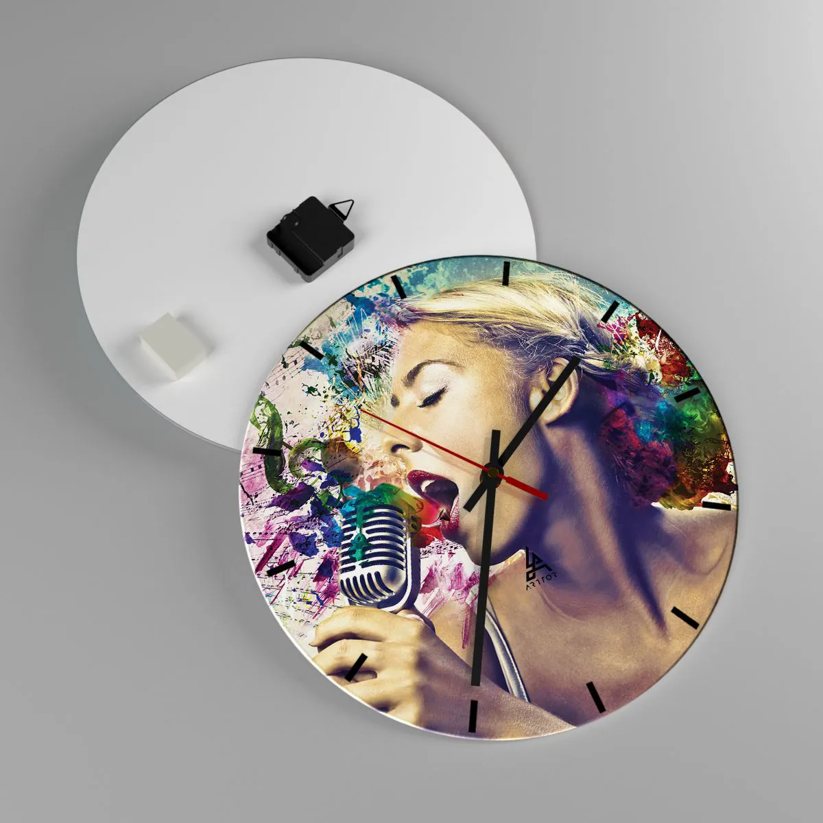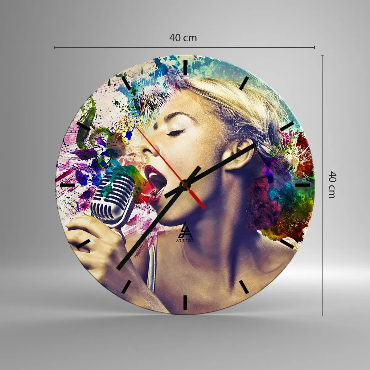 Relógio de parede - Relógio em vidro - Pintar o mundo com a voz - 40x40 cm