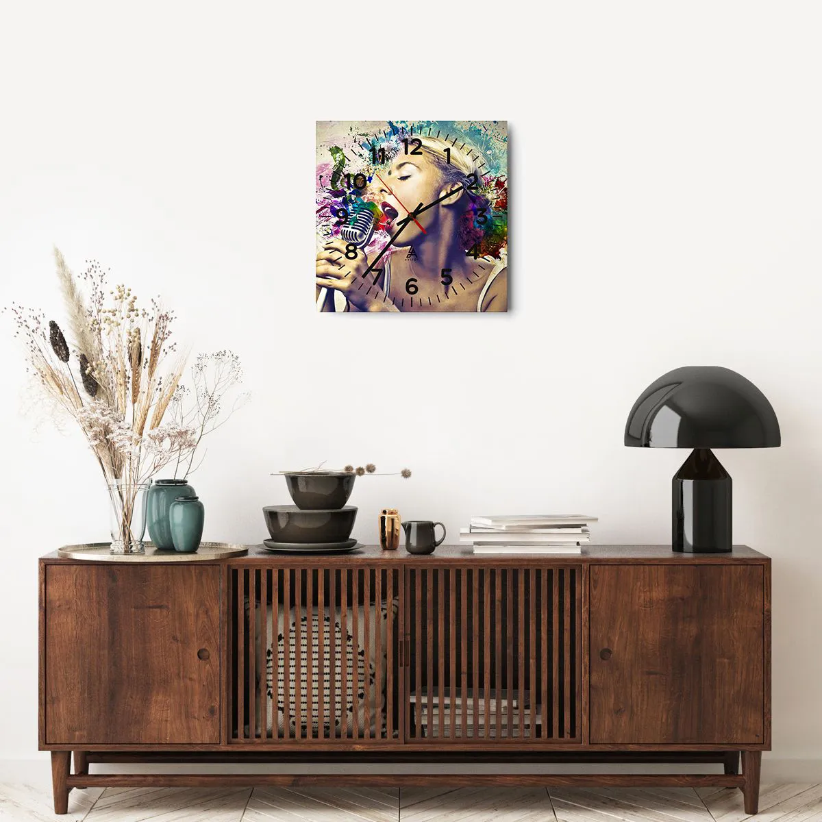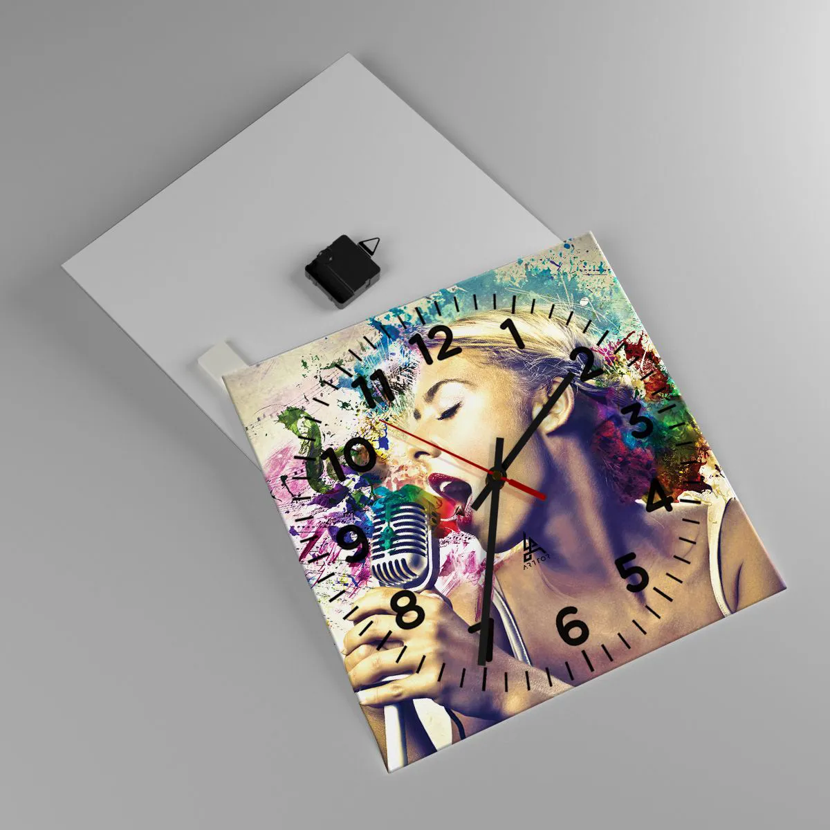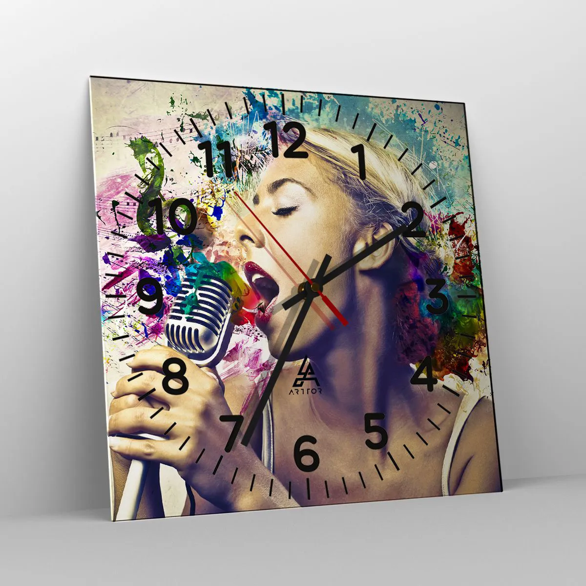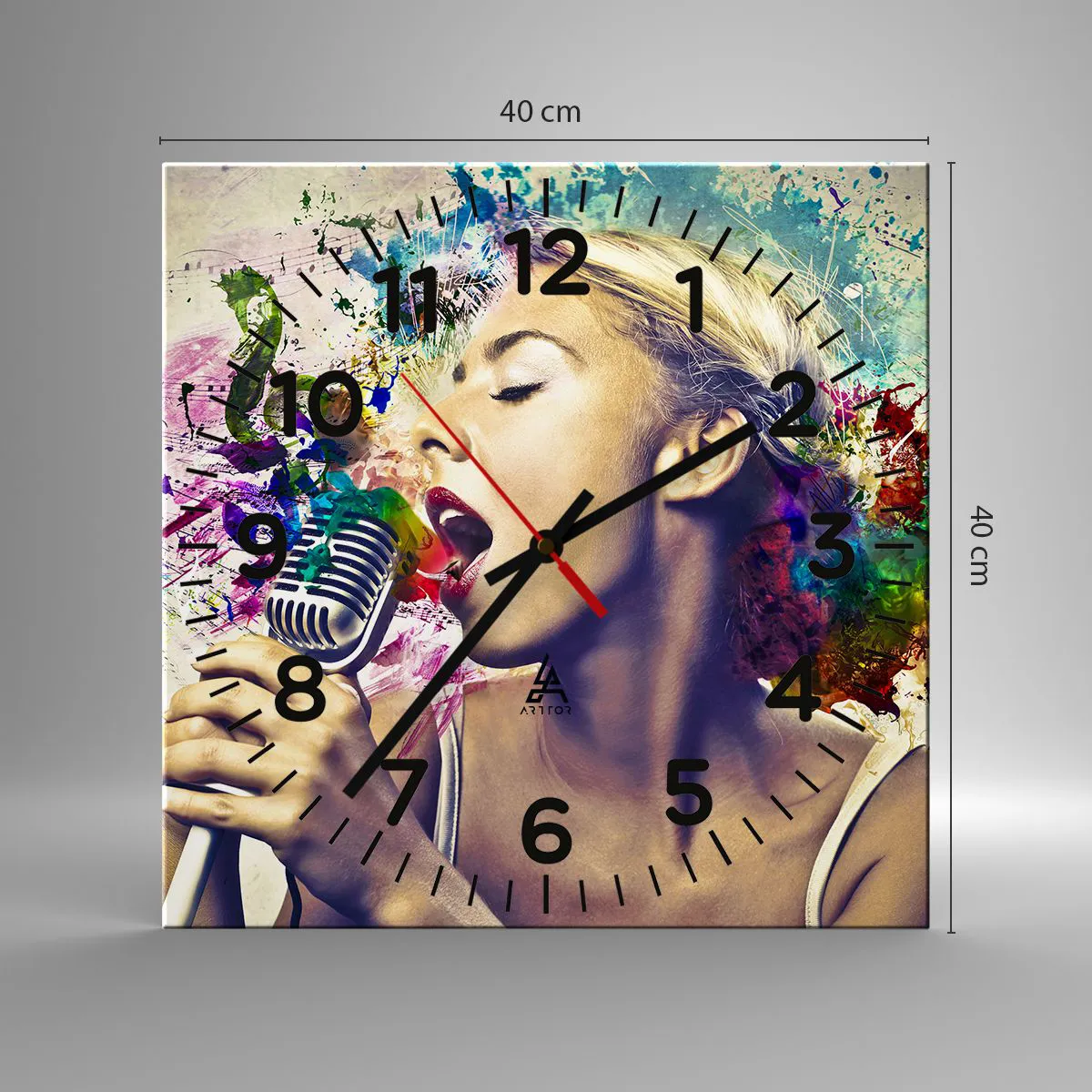 Relógio de parede - Relógio em vidro - Pintar o mundo com a voz - 40x40 cm