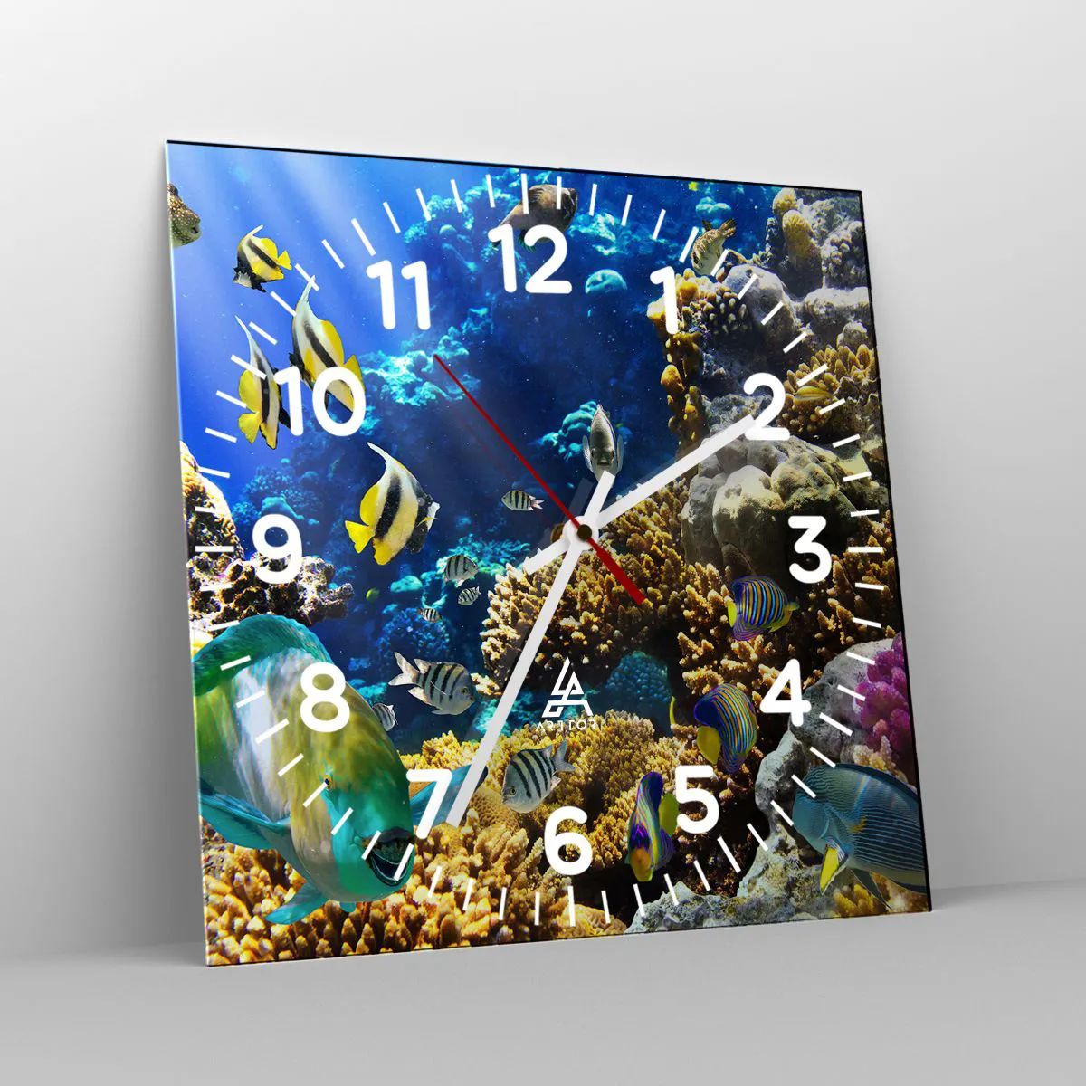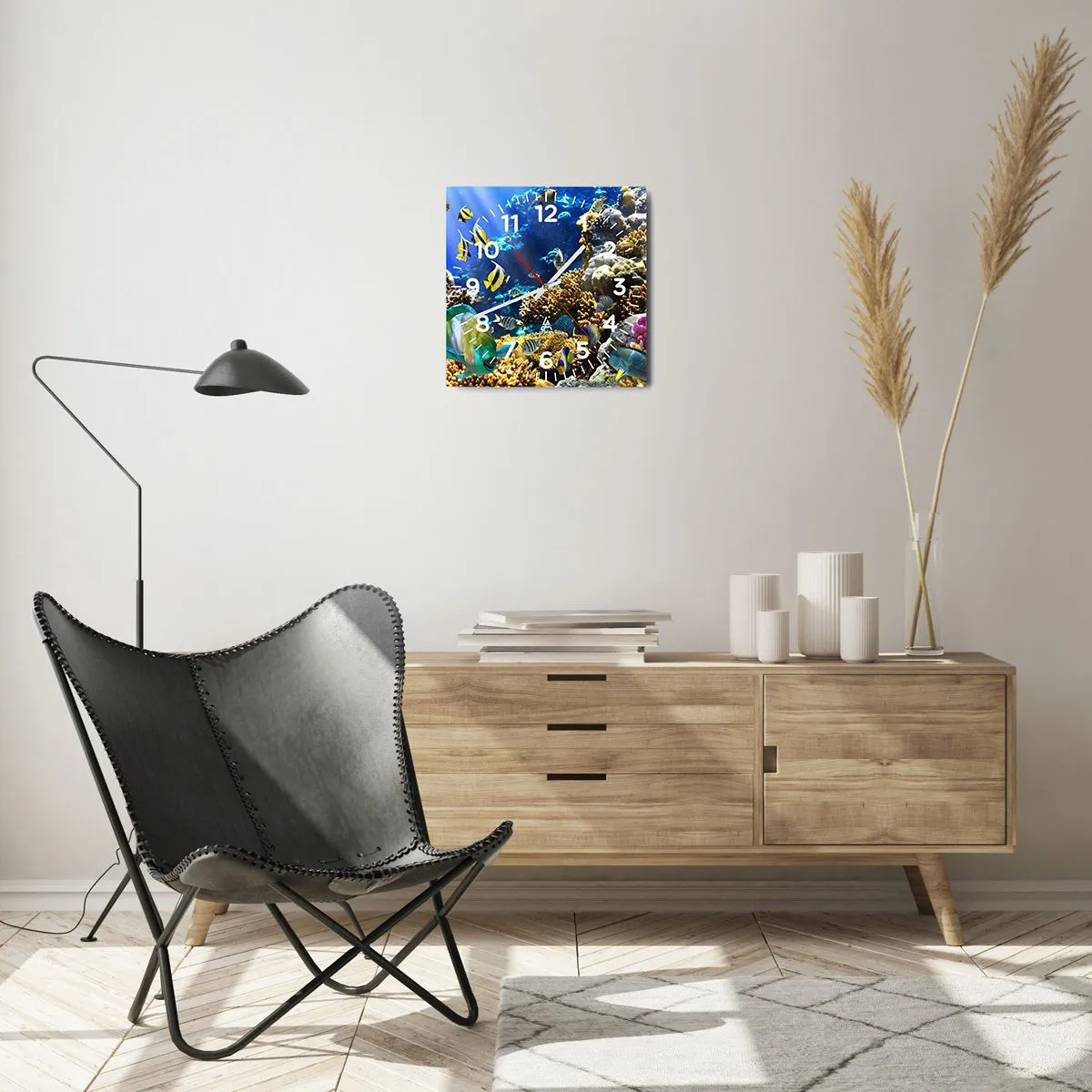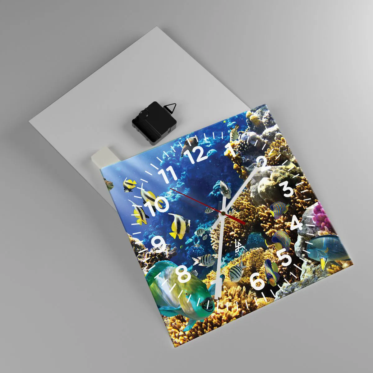 O relógio é feito de vidro durável de 4 mm de espessura. O vidro retém as cores naturais da impressão