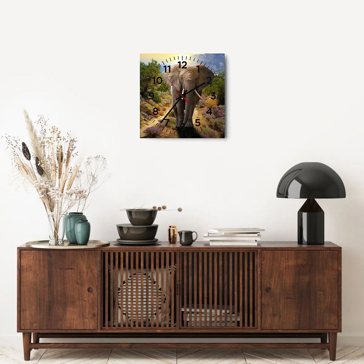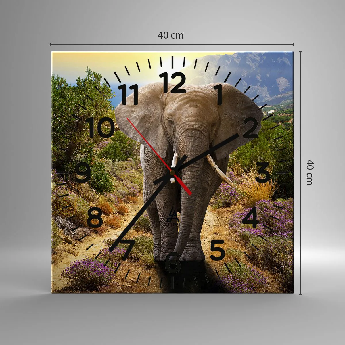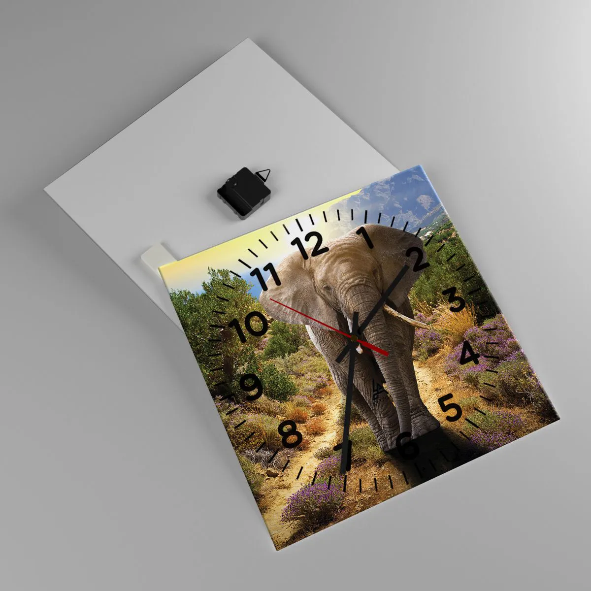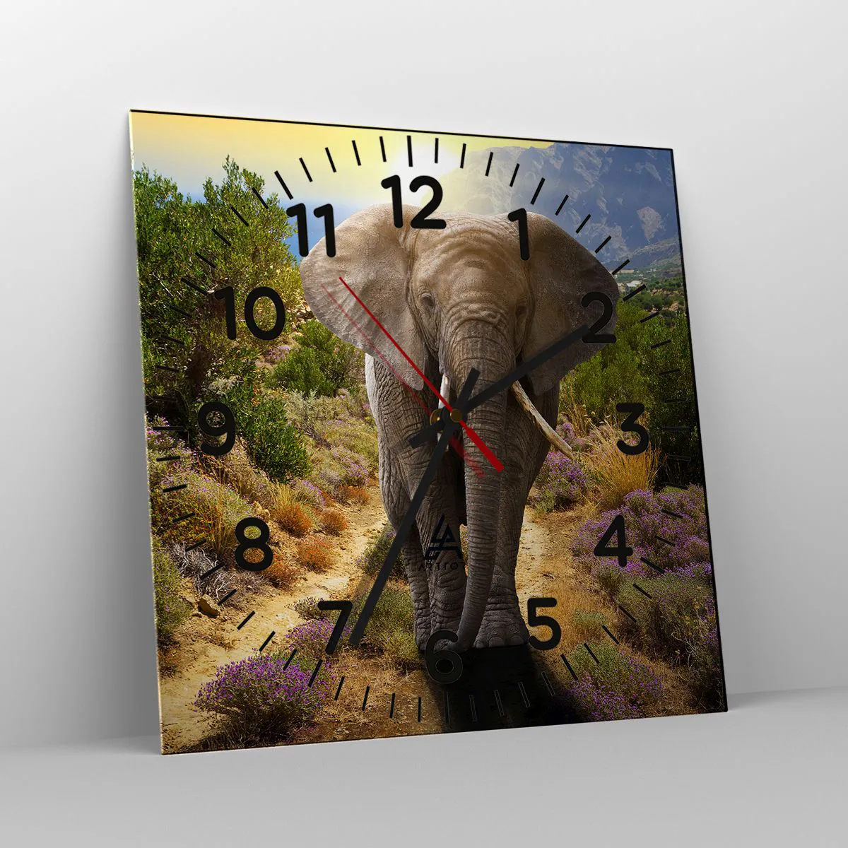O relógio é feito de vidro durável de 4 mm de espessura. O vidro retém as cores naturais da impressão