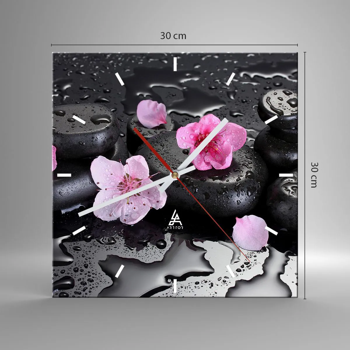 Relógio de parede - Relógio em vidro - Coração de pedra - 30x30 cm