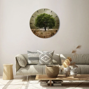 O relógio é feito de vidro de 4mm de espessura. A tecnologia de relógio está em conformidade com a classe de segurança 2B2 de acordo com a norma PN-EN 12600:2004, o que garante resistência ao impacto. O relógio em vidro está pronto para ser pendurado – possui um gancho de metal montado na parte de trás do relógio e um espaçador de espuma, que regula a distância uniforme entre o relógio e a parede. O relógio tem um mecanismo de fluxo silencioso alimentado por uma bateria de 1,5 V - bateria AA (a bateria não está incluída).