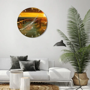 O relógio é feito de vidro durável de 4 mm de espessura. O vidro retém as cores naturais da impressão