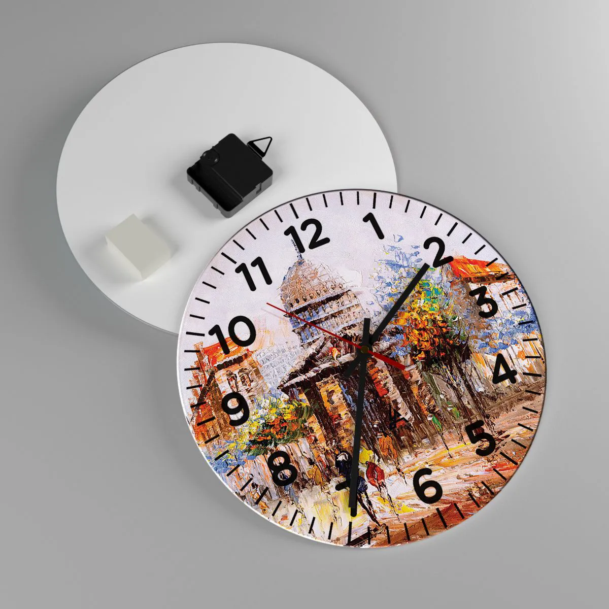 Relógio de parede - Relógio em vidro - Passeio por Paris - 30x30 cm