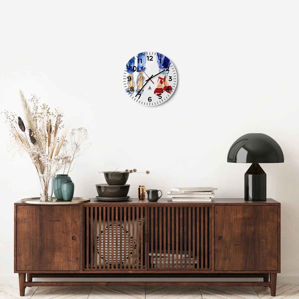 O relógio é feito de vidro durável de 4 mm de espessura. O vidro retém as cores naturais da impressão