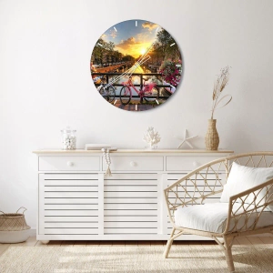 Relógio de parede - Relógio em vidro - Manhã de primavera em Amsterdã - 40x40 cm