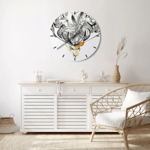 - Este relógio de parede apresenta uma ilustração artística de um veado com chifres cheios de folhas. Uma decoração elegante e inspirada na natureza, perfeita para interiores modernos.