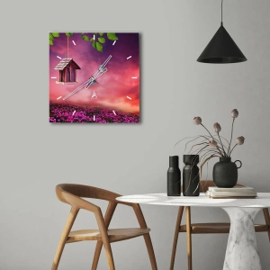 O relógio é feito de vidro durável de 4 mm de espessura. O vidro retém as cores naturais da impressão