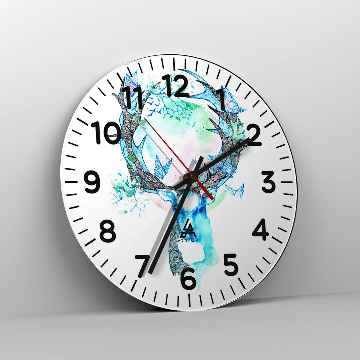 O relógio é feito de vidro durável de 4 mm de espessura. O vidro retém as cores naturais da impressão