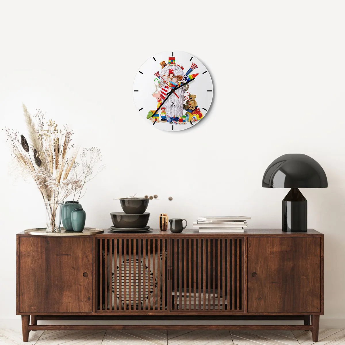 Relógio de parede - Relógio em vidro - Tesouros das crianças - 40x40 cm