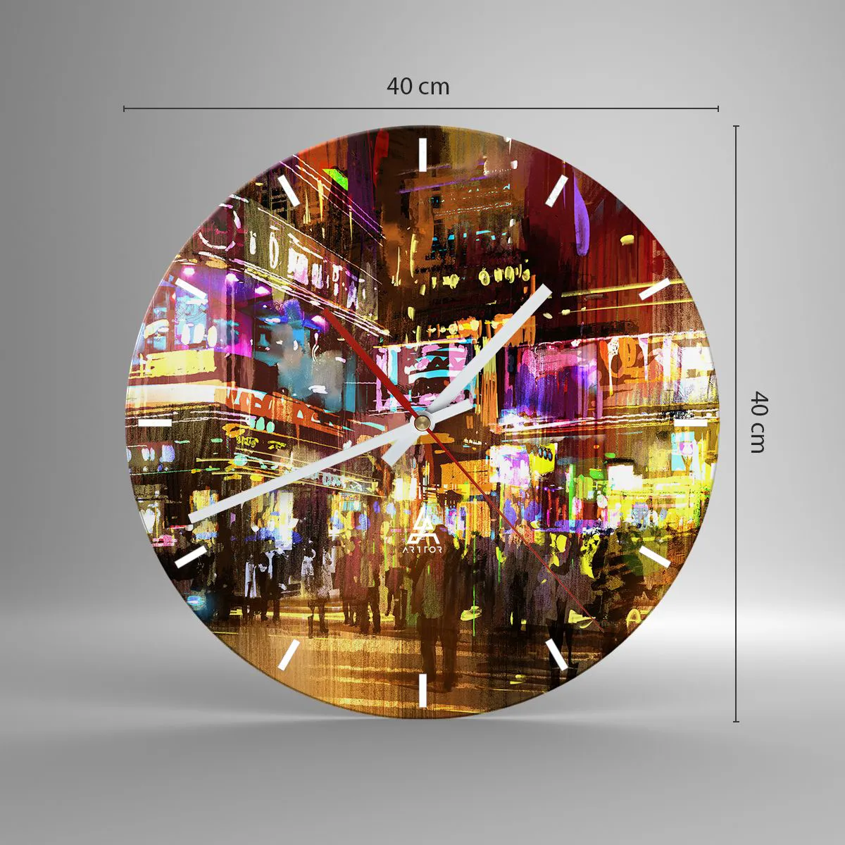 O relógio é feito de vidro durável de 4 mm de espessura. O vidro retém as cores naturais da impressão