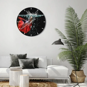 O relógio é feito de vidro de 4mm de espessura. A tecnologia de relógio está em conformidade com a classe de segurança 2B2 de acordo com a norma PN-EN 12600:2004, o que garante resistência ao impacto. O relógio em vidro está pronto para ser pendurado – possui um gancho de metal montado na parte de trás do relógio e um espaçador de espuma, que regula a distância uniforme entre o relógio e a parede. O relógio tem um mecanismo de fluxo silencioso alimentado por uma bateria de 1,5 V - bateria AA (a bateria não está incluída).