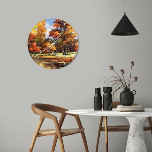 • Este relógio de parede apresenta uma floresta outonal, repleta de folhas coloridas e luz suave. Perfeito para os amantes da natureza e de paisagens pitorescas.