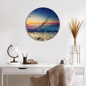 O relógio é feito de vidro durável de 4 mm de espessura. O vidro retém as cores naturais da impressão
