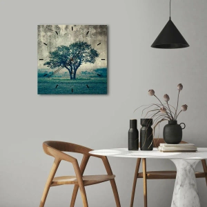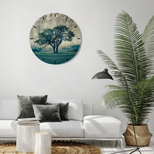 Relógio de parede - Relógio em vidro - Uma macieira num prado azul? - 40x40 cm