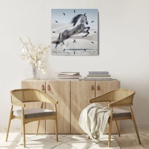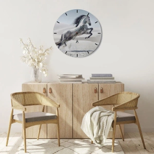 O relógio é feito de vidro de 4mm de espessura. A tecnologia de relógio está em conformidade com a classe de segurança 2B2 de acordo com a norma PN-EN 12600:2004, o que garante resistência ao impacto. O relógio em vidro está pronto para ser pendurado – possui um gancho de metal montado na parte de trás do relógio e um espaçador de espuma, que regula a distância uniforme entre o relógio e a parede. O relógio tem um mecanismo de fluxo silencioso alimentado por uma bateria de 1,5 V - bateria AA (a bateria não está incluída).