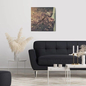 O relógio é feito de vidro durável de 4 mm de espessura. O vidro retém as cores naturais da impressão