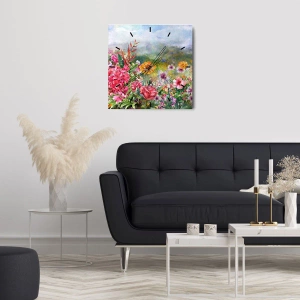 Relógio de parede - Relógio em vidro - O jardim que enlouqueceu - 40x40 cm