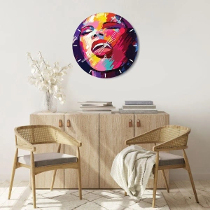 - Este relógio de parede redondo de 30x30 cm apresenta um retrato colorido de uma figura cantando em estilo abstrato. Perfeito para interiores artísticos e modernos.
