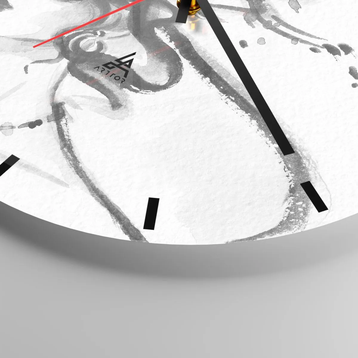 O relógio é feito de vidro de 4mm de espessura. A tecnologia de relógio está em conformidade com a classe de segurança 2B2 de acordo com a norma PN-EN 12600:2004, o que garante resistência ao impacto. O relógio em vidro está pronto para ser pendurado – possui um gancho de metal montado na parte de trás do relógio e um espaçador de espuma, que regula a distância uniforme entre o relógio e a parede. O relógio tem um mecanismo de fluxo silencioso alimentado por uma bateria de 1,5 V - bateria AA (a bateria não está incluída).