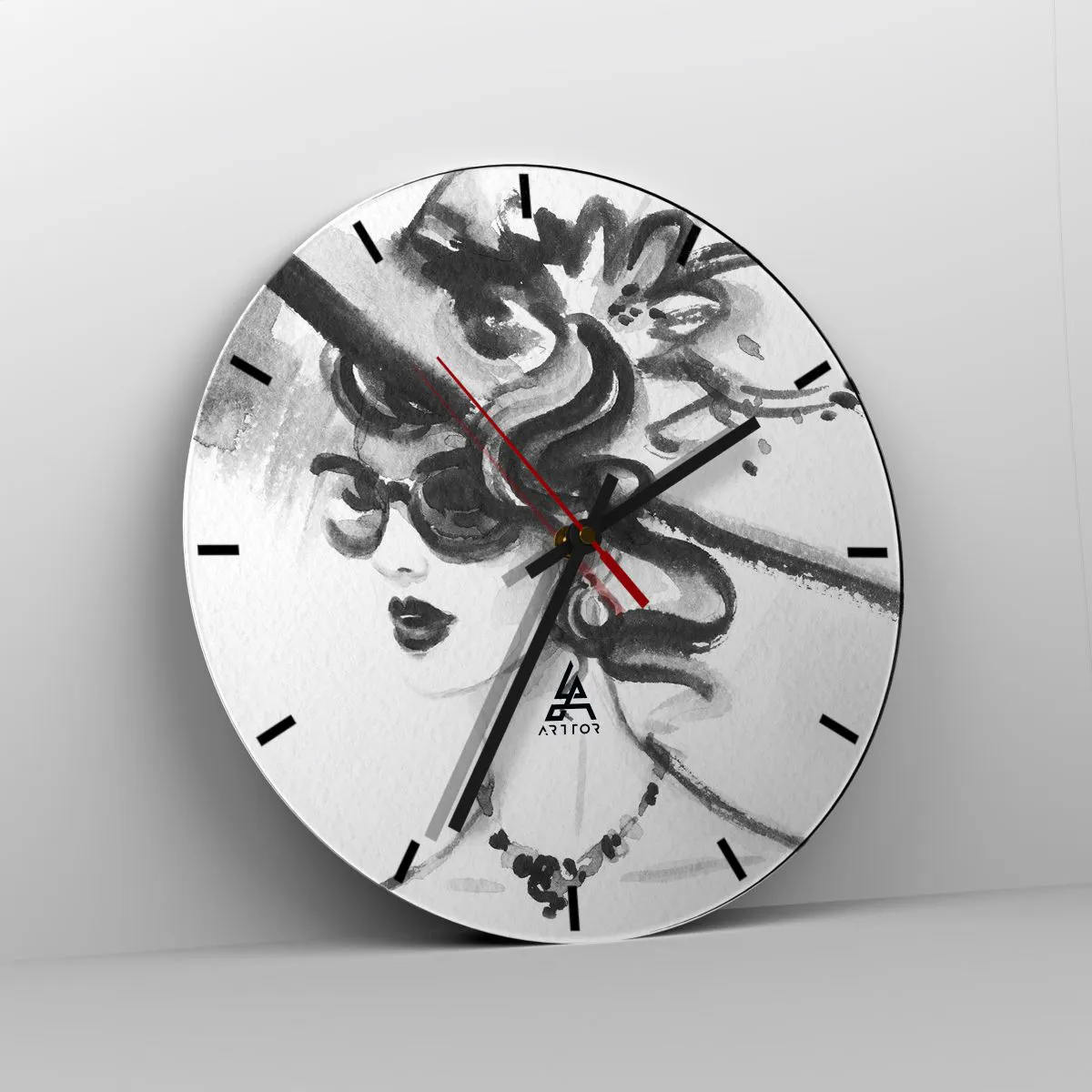 Relógio de parede - Relógio em vidro - Uma dama com caráter - 40x40 cm