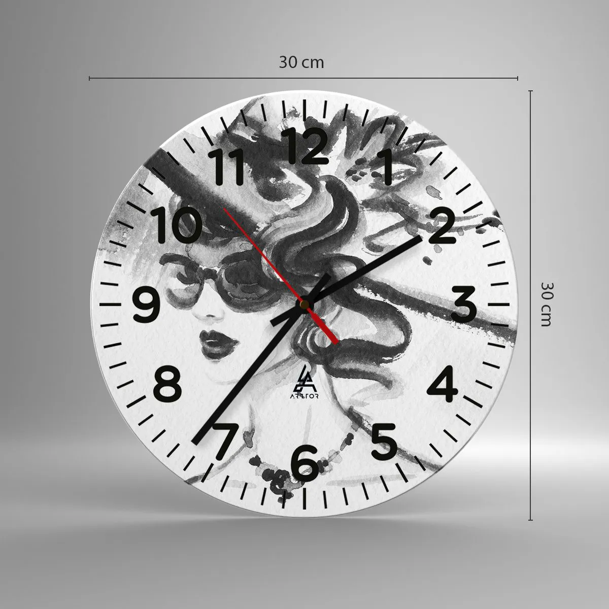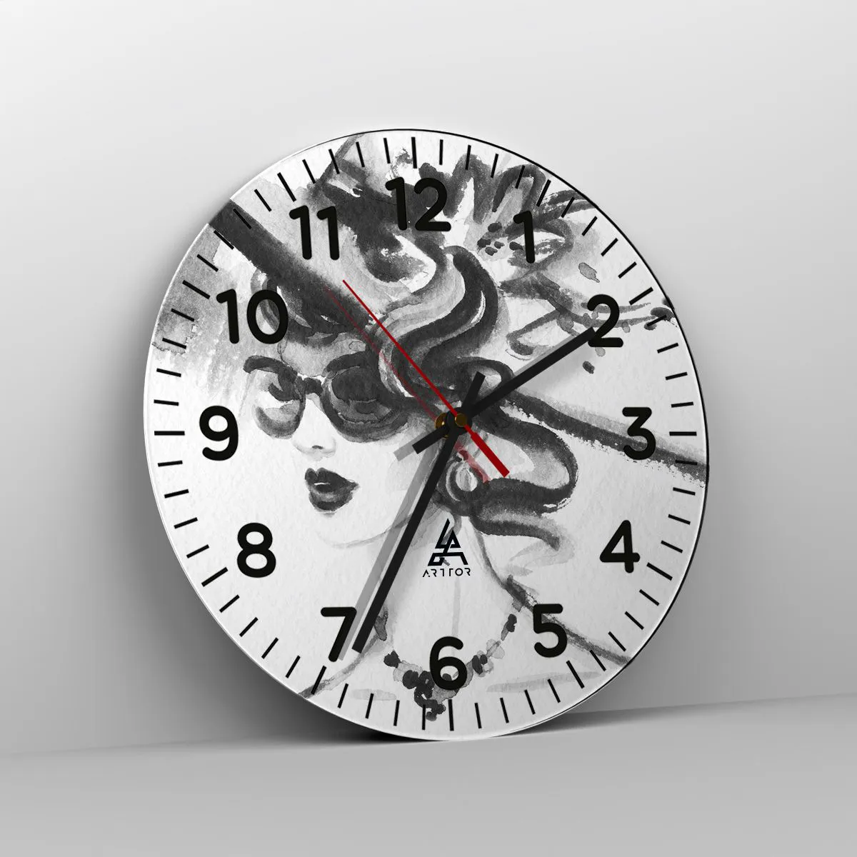Relógio de parede - Relógio em vidro - Uma dama com caráter - 30x30 cm