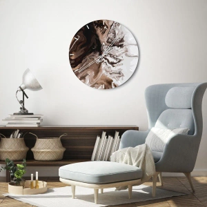 O relógio é feito de vidro de 4mm de espessura. A tecnologia de relógio está em conformidade com a classe de segurança 2B2 de acordo com a norma PN-EN 12600:2004, o que garante resistência ao impacto. O relógio em vidro está pronto para ser pendurado – possui um gancho de metal montado na parte de trás do relógio e um espaçador de espuma, que regula a distância uniforme entre o relógio e a parede. O relógio tem um mecanismo de fluxo silencioso alimentado por uma bateria de 1,5 V - bateria AA (a bateria não está incluída).