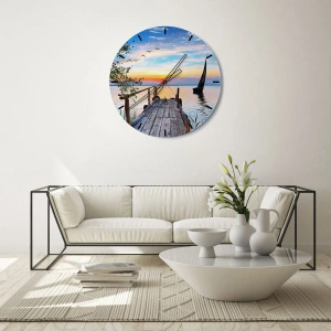 O relógio é feito de vidro durável de 4 mm de espessura. O vidro retém as cores naturais da impressão