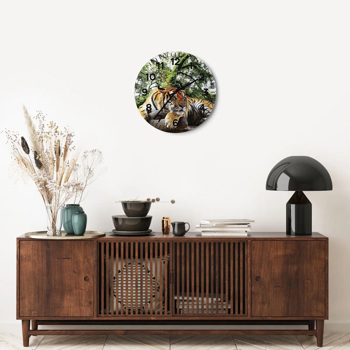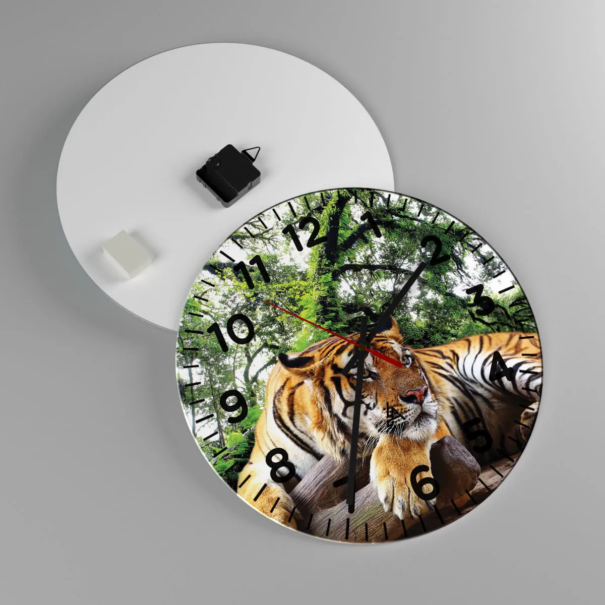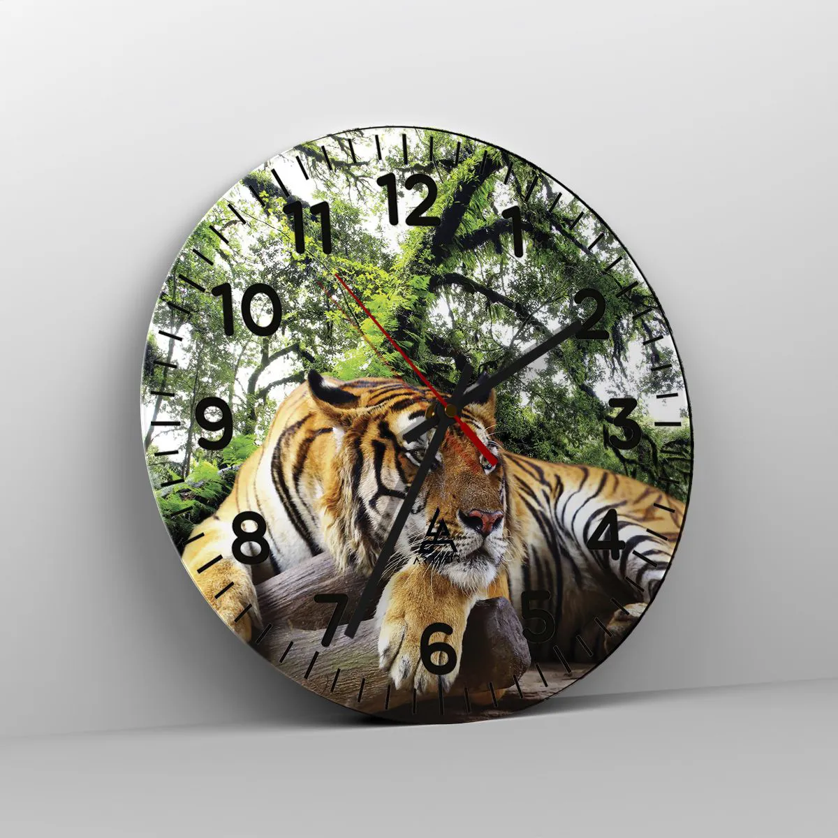 O relógio é feito de vidro durável de 4 mm de espessura. O vidro retém as cores naturais da impressão