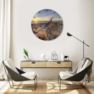 O relógio é feito de vidro de 4mm de espessura. A tecnologia de relógio está em conformidade com a classe de segurança 2B2 de acordo com a norma PN-EN 12600:2004, o que garante resistência ao impacto. O relógio em vidro está pronto para ser pendurado – possui um gancho de metal montado na parte de trás do relógio e um espaçador de espuma, que regula a distância uniforme entre o relógio e a parede. O relógio tem um mecanismo de fluxo silencioso alimentado por uma bateria de 1,5 V - bateria AA (a bateria não está incluída).