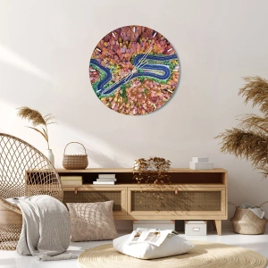 Relógio de parede - Relógio em vidro - Estrada sinuosa pela floresta - 40x40 cm