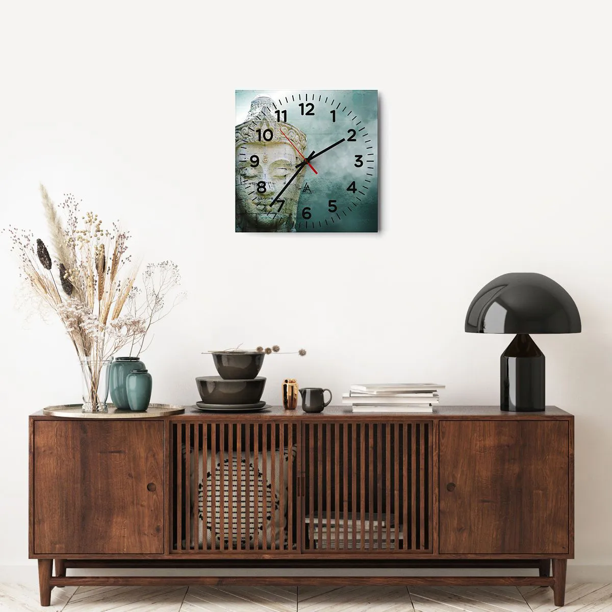 O relógio é feito de vidro durável de 4 mm de espessura. O vidro retém as cores naturais da impressão