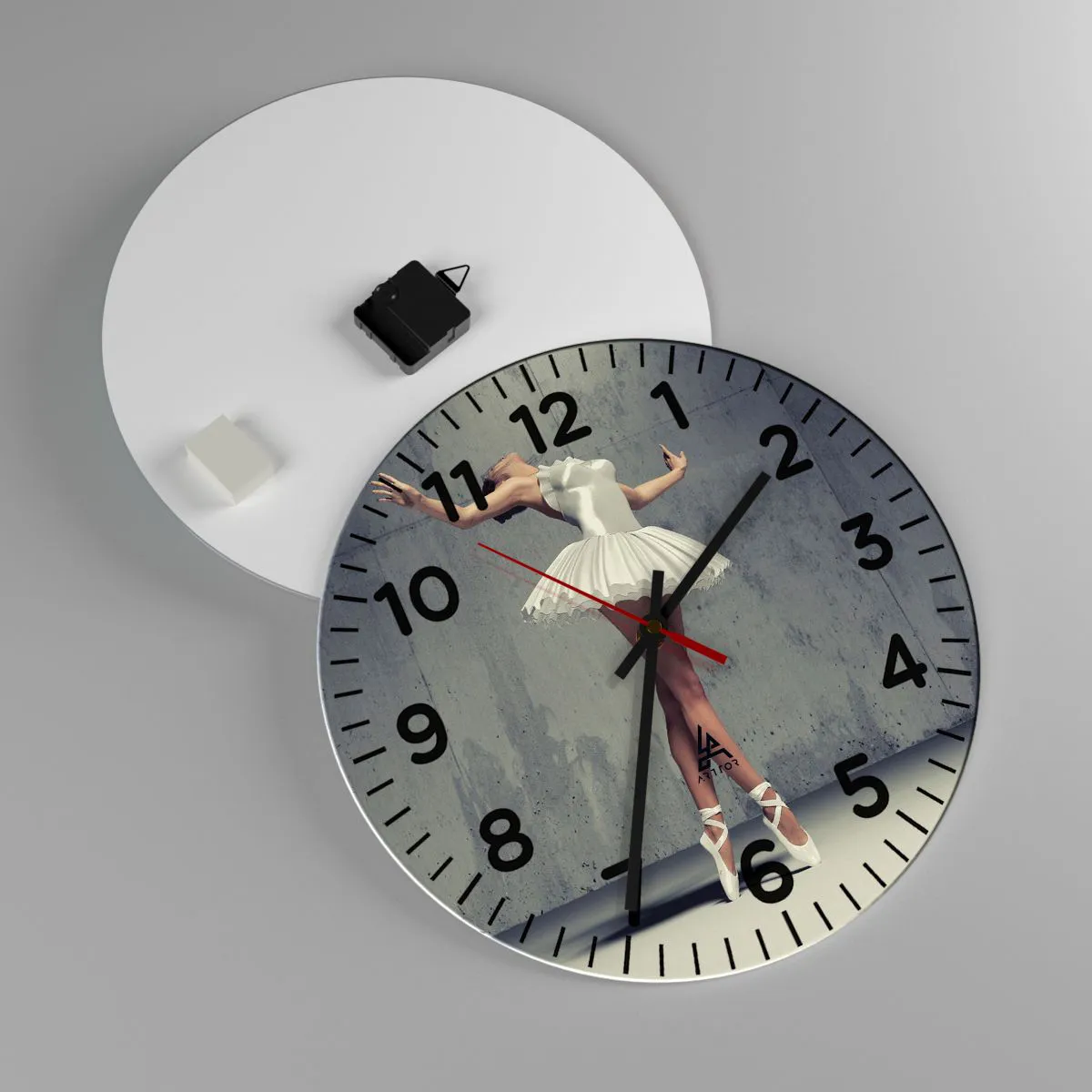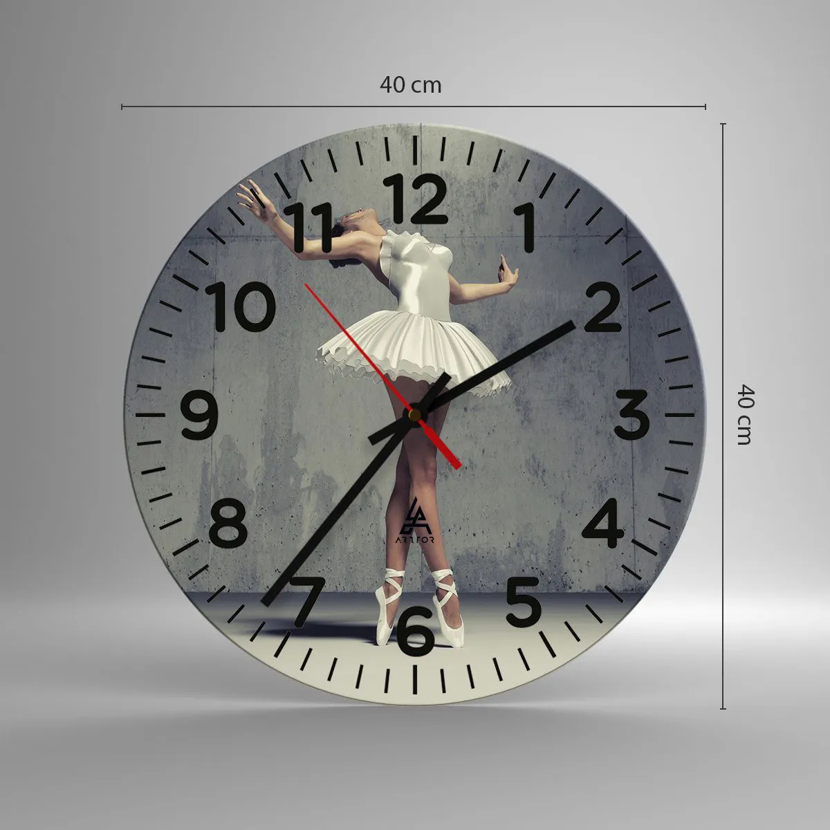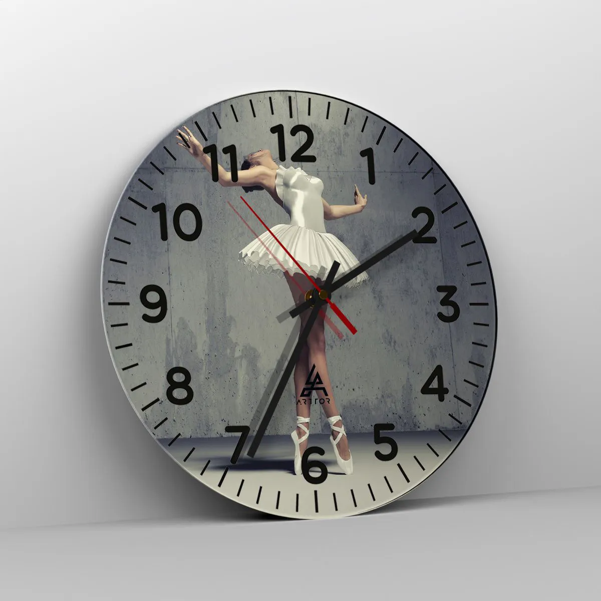 O relógio é feito de vidro de 4mm de espessura. A tecnologia de relógio está em conformidade com a classe de segurança 2B2 de acordo com a norma PN-EN 12600:2004, o que garante resistência ao impacto. O relógio em vidro está pronto para ser pendurado – possui um gancho de metal montado na parte de trás do relógio e um espaçador de espuma, que regula a distância uniforme entre o relógio e a parede. O relógio tem um mecanismo de fluxo silencioso alimentado por uma bateria de 1,5 V - bateria AA (a bateria não está incluída).