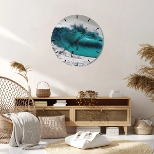O relógio é feito de vidro de 4mm de espessura. A tecnologia de relógio está em conformidade com a classe de segurança 2B2 de acordo com a norma PN-EN 12600:2004, o que garante resistência ao impacto. O relógio em vidro está pronto para ser pendurado – possui um gancho de metal montado na parte de trás do relógio e um espaçador de espuma, que regula a distância uniforme entre o relógio e a parede. O relógio tem um mecanismo de fluxo silencioso alimentado por uma bateria de 1,5 V - bateria AA (a bateria não está incluída).