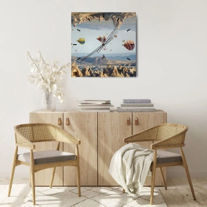O relógio é feito de vidro de 4mm de espessura. A tecnologia de relógio está em conformidade com a classe de segurança 2B2 de acordo com a norma PN-EN 12600:2004, o que garante resistência ao impacto. O relógio em vidro está pronto para ser pendurado – possui um gancho de metal montado na parte de trás do relógio e um espaçador de espuma, que regula a distância uniforme entre o relógio e a parede. O relógio tem um mecanismo de fluxo silencioso alimentado por uma bateria de 1,5 V - bateria AA (a bateria não está incluída).
