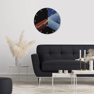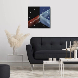 O relógio é feito de vidro de 4mm de espessura. A tecnologia de relógio está em conformidade com a classe de segurança 2B2 de acordo com a norma PN-EN 12600:2004, o que garante resistência ao impacto. O relógio em vidro está pronto para ser pendurado – possui um gancho de metal montado na parte de trás do relógio e um espaçador de espuma, que regula a distância uniforme entre o relógio e a parede. O relógio tem um mecanismo de fluxo silencioso alimentado por uma bateria de 1,5 V - bateria AA (a bateria não está incluída).