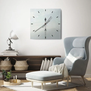 O relógio é feito de vidro de 4mm de espessura. A tecnologia de relógio está em conformidade com a classe de segurança 2B2 de acordo com a norma PN-EN 12600:2004, o que garante resistência ao impacto. O relógio em vidro está pronto para ser pendurado – possui um gancho de metal montado na parte de trás do relógio e um espaçador de espuma, que regula a distância uniforme entre o relógio e a parede. O relógio tem um mecanismo de fluxo silencioso alimentado por uma bateria de 1,5 V - bateria AA (a bateria não está incluída).