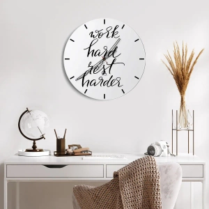 O relógio é feito de vidro de 4mm de espessura. A tecnologia de relógio está em conformidade com a classe de segurança 2B2 de acordo com a norma PN-EN 12600:2004, o que garante resistência ao impacto. O relógio em vidro está pronto para ser pendurado – possui um gancho de metal montado na parte de trás do relógio e um espaçador de espuma, que regula a distância uniforme entre o relógio e a parede. O relógio tem um mecanismo de fluxo silencioso alimentado por uma bateria de 1,5 V - bateria AA (a bateria não está incluída).